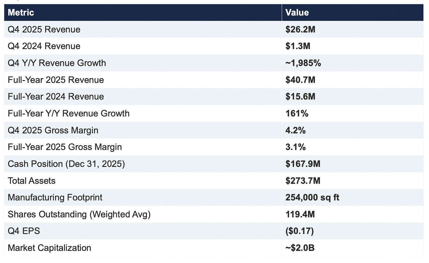 The full-year number of $40.7 million, up 161% Y/Y, tells the story of a company that was largely pre-revenue at scale 12 months ago and is now delivering real product at real volume. The Q4 annualized run rate exceeds $100 million, which is significant because it provides a credible foundation for the Street’s 2026 revenue estimates in the $100-170 million range.